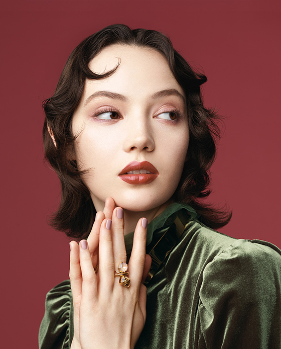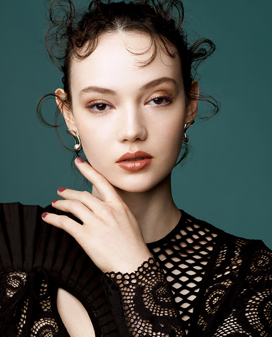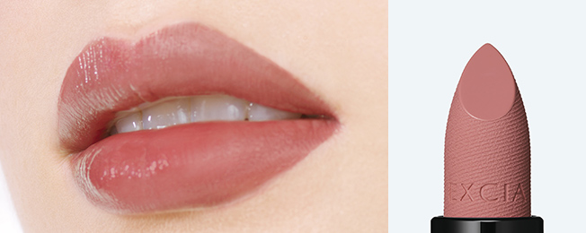 唇の存在感をきわだたせて。