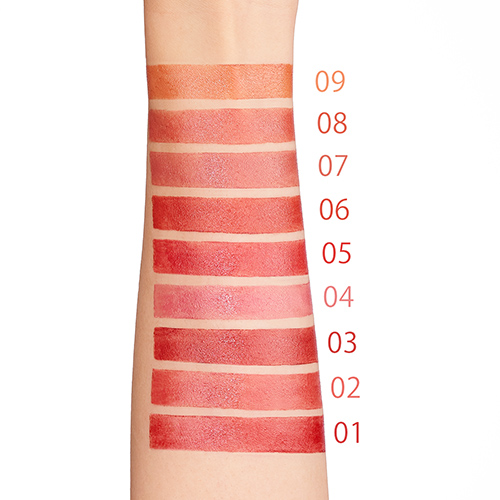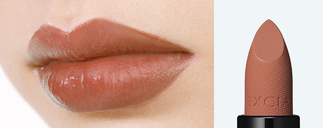 リップコンシーラーをつけたかのように唇を均一に整える「ヌーディメルト成分(合成フルオロフロゴパイト、イソステアリン酸デキストリン)」配合。どんな色味の唇にもなめらかに溶けこみ、重厚で美しい発色を叶えます。